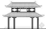 本设计为旅游区古典牌楼建筑设计方案 工程建筑面积约为:结构形式为:混凝土结构、层数为: 1层、高度为:8 米 本套图纸包括建筑平面、立面、剖面图等,共5张图纸