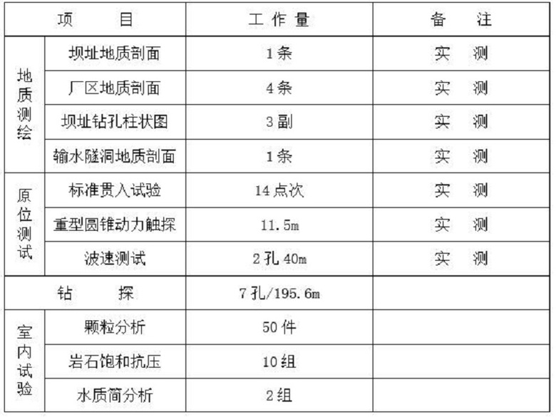 本资料为水电站工程地质勘察报告,共28页。简介:本电站采用隧洞引水发电,输水隧洞从挡水回水区右岸山体进洞,从山体东侧出洞,洞长88m。本工程在可行性研究之前未做过针对性的地质工作,本阶段遵照小型水利水电工程可行性研究...