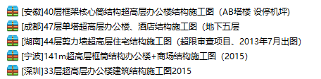 一键下载!5栋超高层办公楼结构施工图全部收入囊中!附件内容包括:[安徽]40层框架核心筒结构超高层办公楼结构施工图(AB塔楼 设停机坪)[宁波]141m超高层框筒结构办公楼+商场结构施工图(2015)[深圳]33层超高层办公楼建筑结构施...