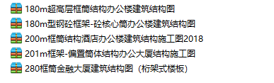 5套超高层商业综合体建筑结构图主要包括:180m超高层框筒结构办公楼建筑结构施工图(87.9M )180m型钢砼框架-砼核心筒办公楼建筑结构图(405M)200m框筒结构酒店办公楼建筑结构施工图2018(133M)201m框架-偏置筒体结构办公大厦结构...