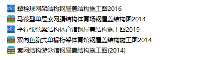 一键下载!5套钢屋盖结构施工图!桁架网架索网张弦梁等结构类型!主要包括:平行张弦梁结构体育馆钢屋盖结构施工图2019螺栓球网架结构钢屋盖结构施工图2016马鞍型单层索网膜结构体育场钢屋盖结构图2014双向鱼腹式单榀桁架体育馆...